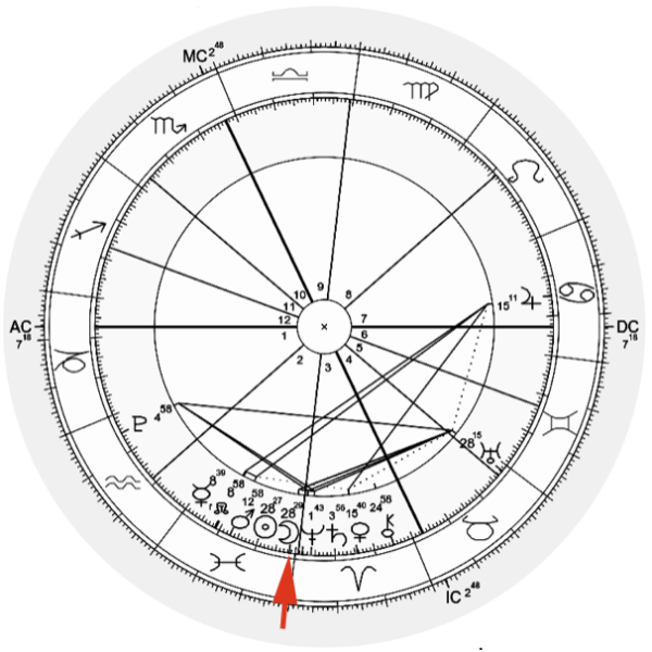 All’interno di questo stellium si trova Mercurio retrogrado, congiunto al Nodo Nord.